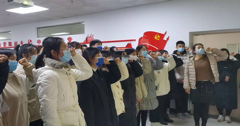 党总支副书记李鑫汝同志带领转正党员进行集中学习教育,并对转正党员寄予深厚希望,希望他们随时都与党的思想保持一致,以党员的标准要求自己,起到先锋模范作用。