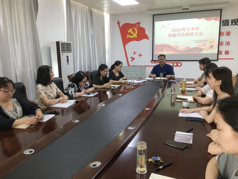 2022年6月7日下午,yl8858永利教工党支部在党员之家召开了2022年上半年预备党员接收大会。会议由教工党支部书记谭冠文主持。公司党总支书记雷雨广、全体教工支部党员及两名发展对象参加了本次会议。
