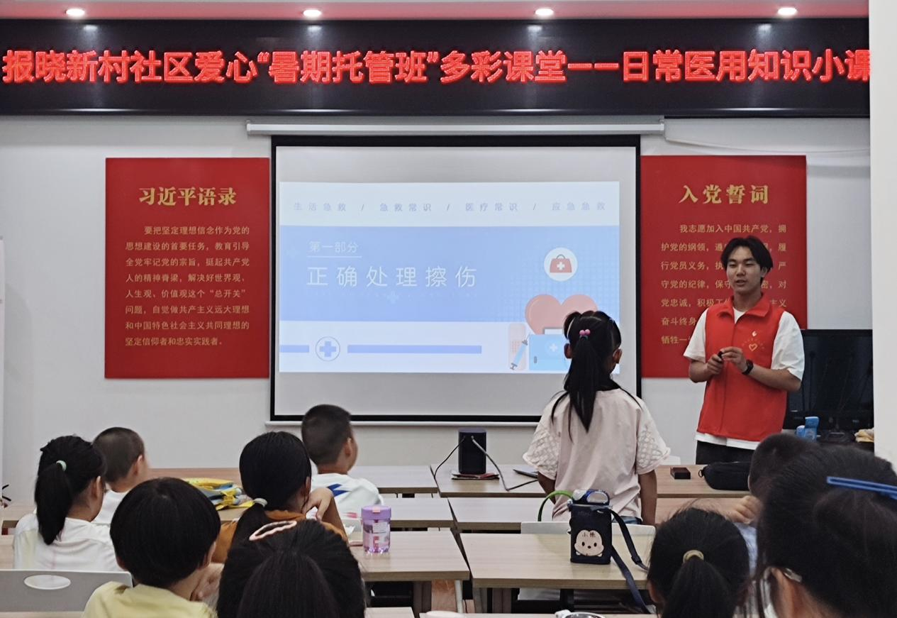 暑假期间,为引导和帮助青少年儿童度过一个安全、快乐、充实的假期,yl8858永利的志愿者们走进信阳市报晓新村社区和五星社区,开展了“多彩假期,‘艺’路‘童’行”暑期社会实践活动,为社区青少年儿童提供贴心服务,丰富暑期生活,减轻家长们假期“看护难”的负担。志愿者们结合专业所长,精心组织了急救知识、交通安全、绘画、手工制作等多彩小课堂,通过列举日常生活中的常见例子,以及“你问我答”等多种方式,使课堂更加生动易懂,不仅增强了孩子们的安全意识,也为社区青少年播下了知识的种子,用心呵护每一位幼苗,为他们健康成长保驾护航。