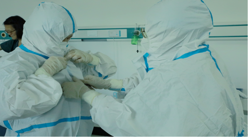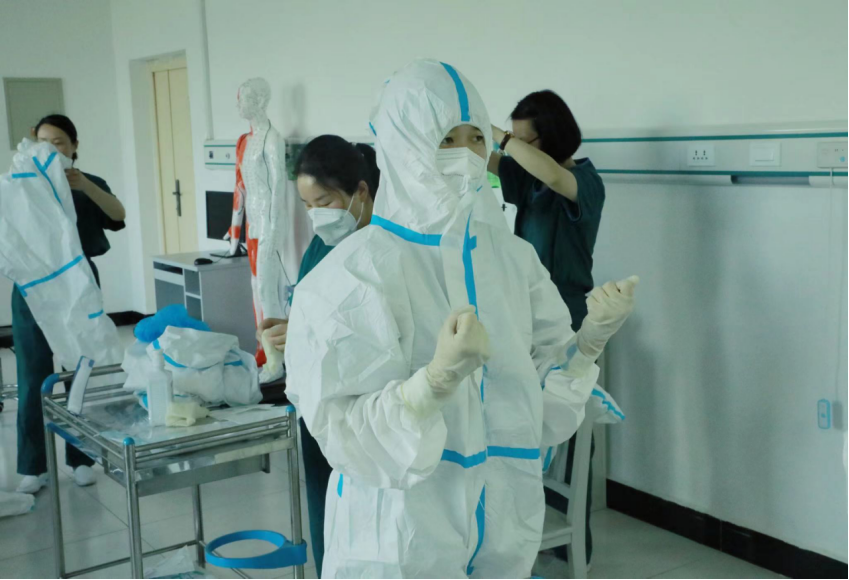 示教老师通过视频和示范教学,向大家介绍了防护服穿脱规范、咽拭子采样流程与注意事项以及医疗废物处置方法等。示教结束后,大家热情高涨,积极练习。老师们纷纷表示参加了培训,“在需要我的时候,就可以穿上防护服协助医务人员,缓解他们的巨大压力”“成为一名核酸检测志愿者,为社会尽一份力,是一件义不容辞的事情”。