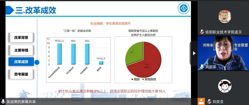 为聚焦护理行业发展新形势,探究产教融合新思路、新模式,2022年12月24日8:30,郑州铁路职业技术公司在线上主办了河南省护理产教融合专业联盟学术年会,公司全体教师参加会议。