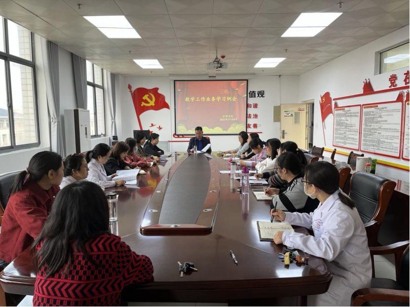 会上,方明月副经理首先汇报了常规教学实验实训课程授课情况和护理教学资源库的建设推进情况,双高工程年度完成情况,新增健康养老服务与管理专业申报情况,并就本学期期末教学工作做出具体安排。
