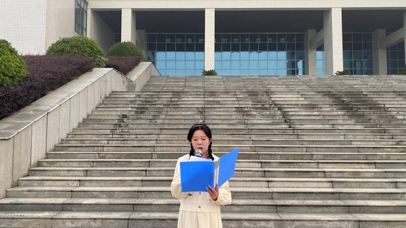 20级普专护理02班的孙玮作为员工代表在国旗下发言。