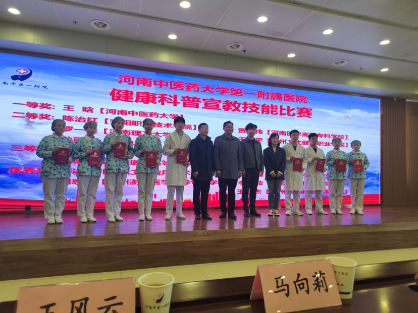 3月3日,公司党总支书记雷雨广出席了表彰大会并作为颁奖嘉宾为“护理实习生健康科普宣教技能比赛”获奖人员颁奖,会后与实习生亲切交谈并合影留念。