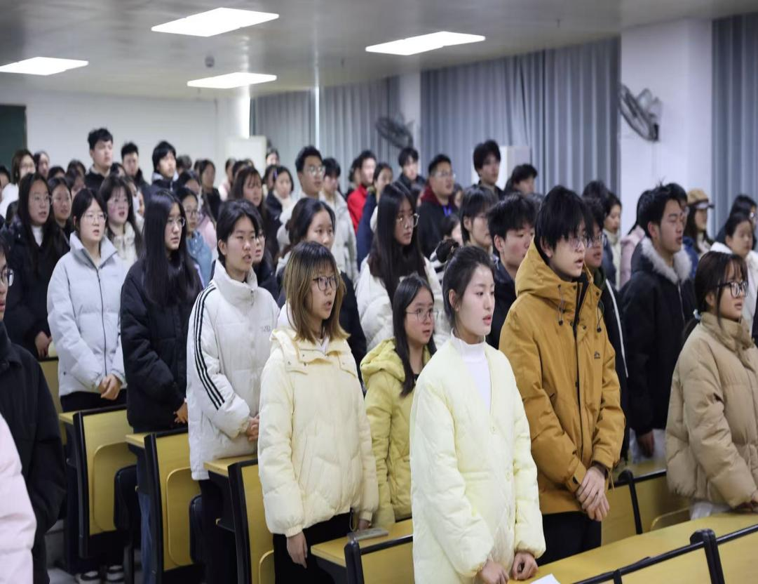 仪式在庄严的国歌声中拉开帷幕,全体师生起立齐唱国歌,现场氛围庄重严肃。随后,李主任详细解读了国家奖助学金政策,围绕设立目的、申请条件、评审流程及发放标准等核心内容展开讲解,帮助同学们深入了解资助体系。