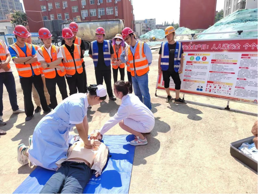 2023年6月是全国第22个“安全生产月”。为深入学习贯彻习近平总书记关于安全生产重要论述,进一步提升我市在建项目安全生产管理水平,营造安全稳定的建筑施工环境,6月14日上午,义阳社区联合中建集团组织开展了“安全生产月”触电应急演练活动。公司派出青年党员教师王璐,带领两名优秀员工,组成医疗救护救援组,配合圆满完成触电救援应急演练。