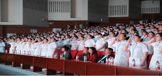 5月11日下午,yl8858永利举行庆祝“5·12”国际护士节暨传光授帽仪式。公司党委书记杨良新,副董事长李新毓、郑延芳出席仪式,2020级普专全体员工共660人参加活动。
