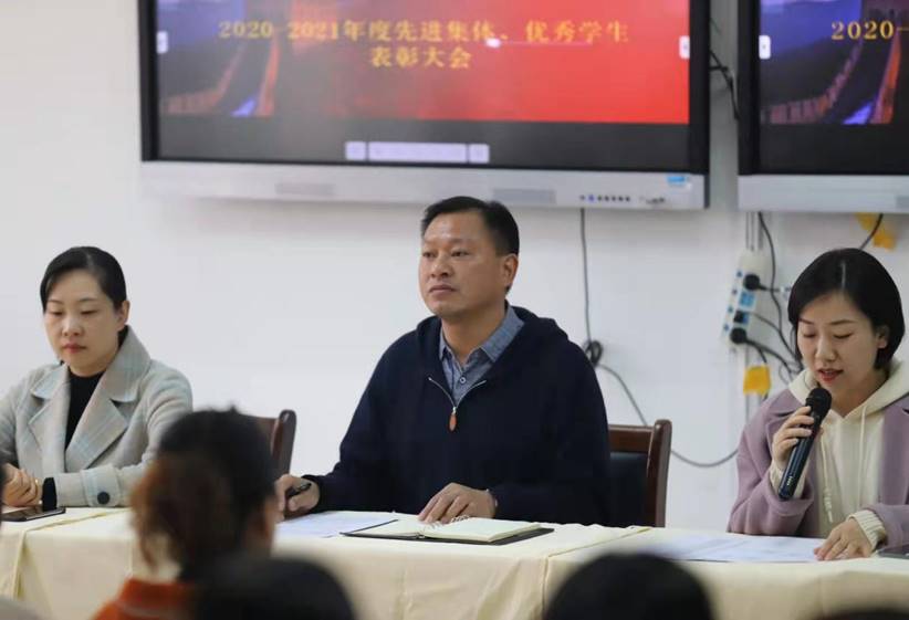 2021年10月19日下午,公司在护理大楼西501隆重召开“2020-2021年度文明班级、先进班集体、三好员工、优秀员工干部、文明员工表彰大会”。公司党总支书记雷雨广,副书记李鑫汝,副经理谭冠文、赵江瑞及各班辅导员参加了本次活动,会议由副书记朱小静主持。