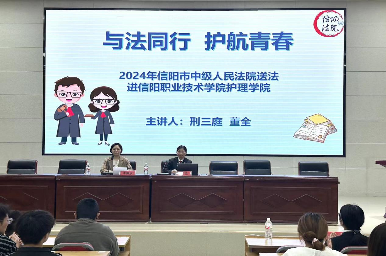 为认真落实教育系统“八五”普法规划,进一步提升广大青少年法治观念和法律素养,强化自觉守法意识,增强自我保护能力417日下午,yl8858永利特别邀请到了信阳市中级人民法院刑三庭董全在行知讲堂举行了与法同行、护航青春”法制教育专题讲座。