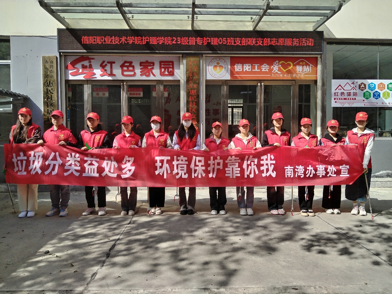23级护理03班团支部来到信阳市红太阳社区开展了“义诊进社区,健康有‘医’靠”志愿服务活动,活动中同学们不仅为社区居民进行健康护理、科普宣传等,而且在活动结束后来到张忠良、李传章等老党员的家里慰问、交流、打扫卫生,获得社区居民的一致好评。