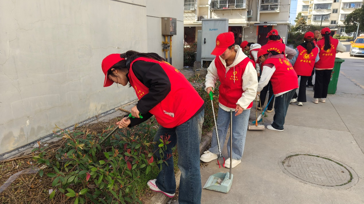 为提高员工环保意识,为师生营造一个温馨、干净、清洁的校园生活环境,23级护理02班团支部走进信职龙飞苑小区开展卫生清扫志愿活动。志愿者们秉承着认真负责的态度,开始打扫卫生,有的清理废品、有的清理树叶、有的捡拾白色垃圾,志愿者们分工明确、干劲十足。经过志愿者的辛勤劳动,小区环境变得更加清新美丽、整洁有序。