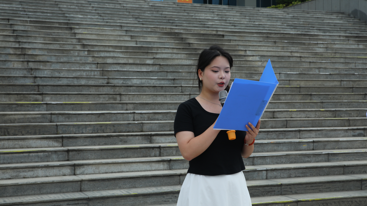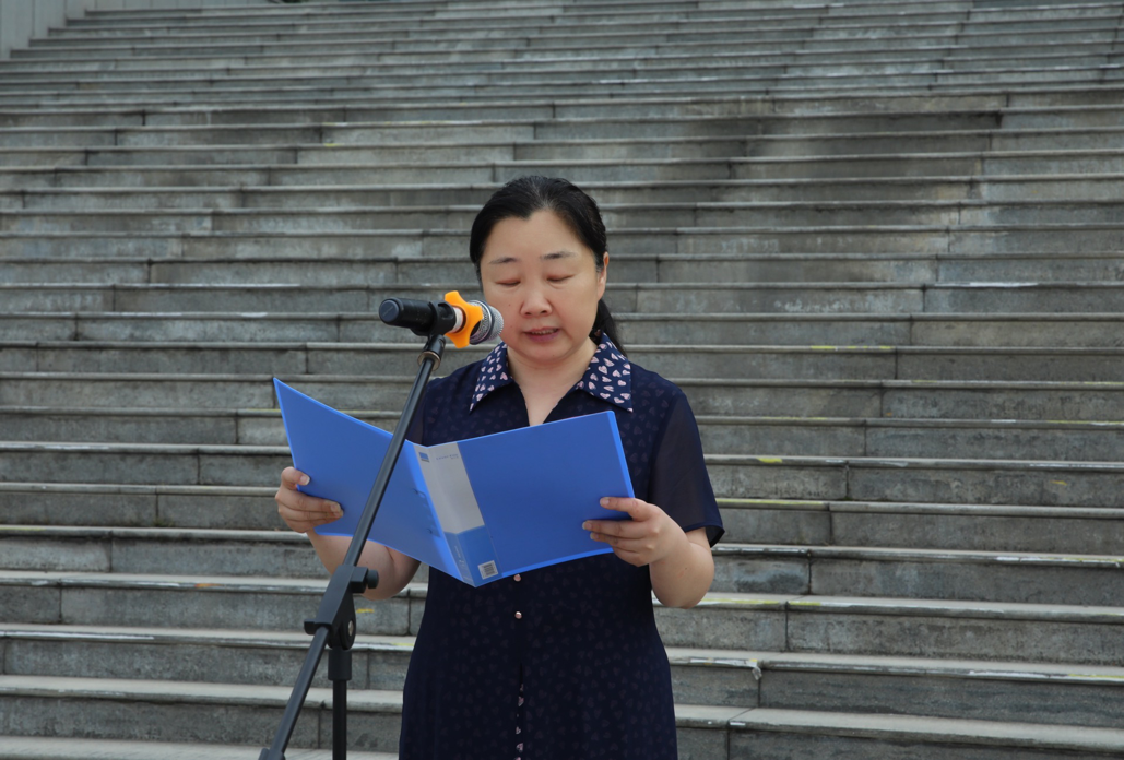 员工代表张锦润在国旗下发言。她号召大家要不断学习、求实创新,勇做新时代的接班人。
