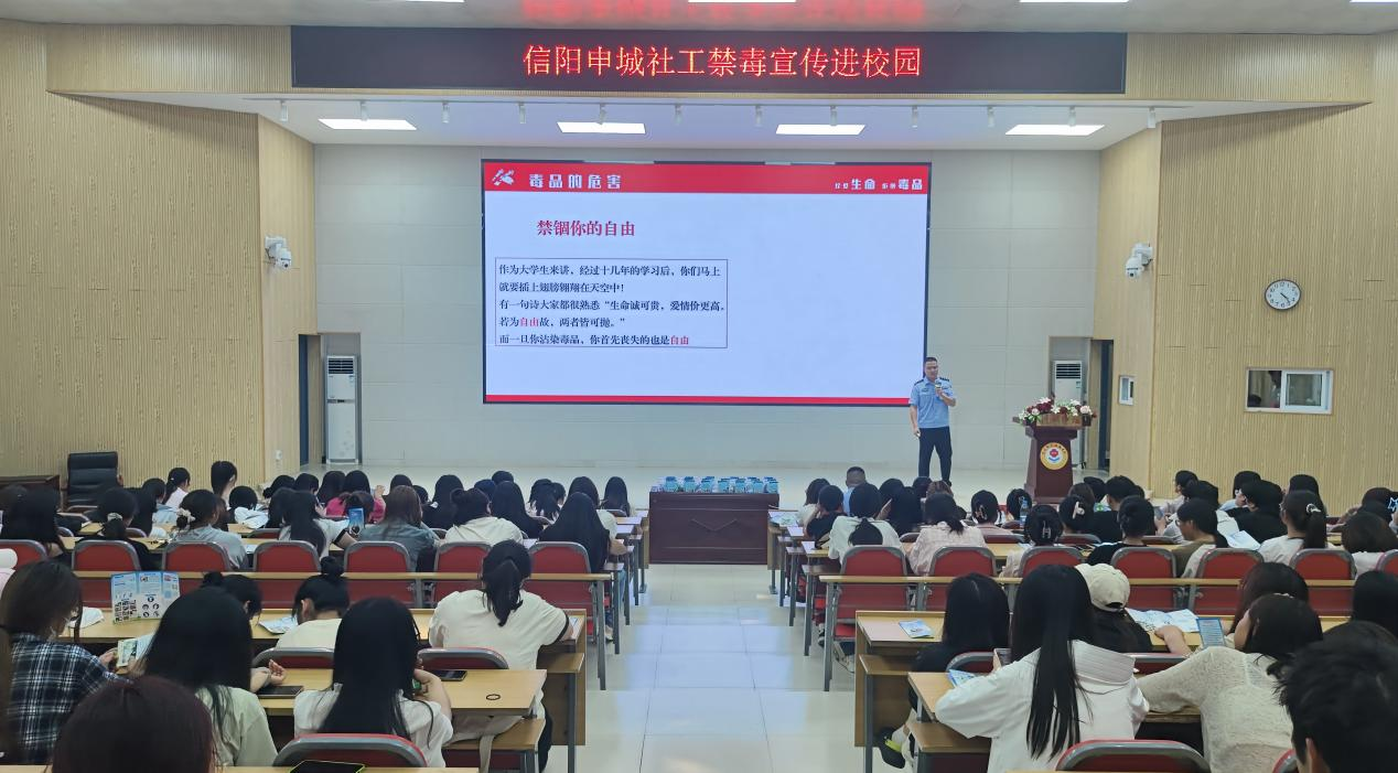 本次讲座由信阳市强制隔离戒毒所管理和教育科负责人王向勇科长为大家宣讲。王科长向大家认真讲解了《中华人民共和国禁毒法》和《戒毒条例》等相关法律法规,以及如何识别毒品、拒绝毒品,告诫大家对待毒品要有警觉戒备意识,提高对诱惑的警惕性。王科长还结合真实案例、现场展示新型禁毒模型,将毒品预防教育转化为立体的、可视化的互动场景,使同学们深刻认识到吸毒对个人、家庭、社会的严重危害。